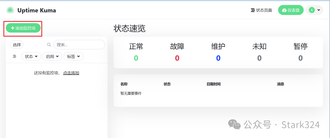 🔺进来之后可以看到它的UI界面确实挺简洁的。我们先来“添加监控项”吧。